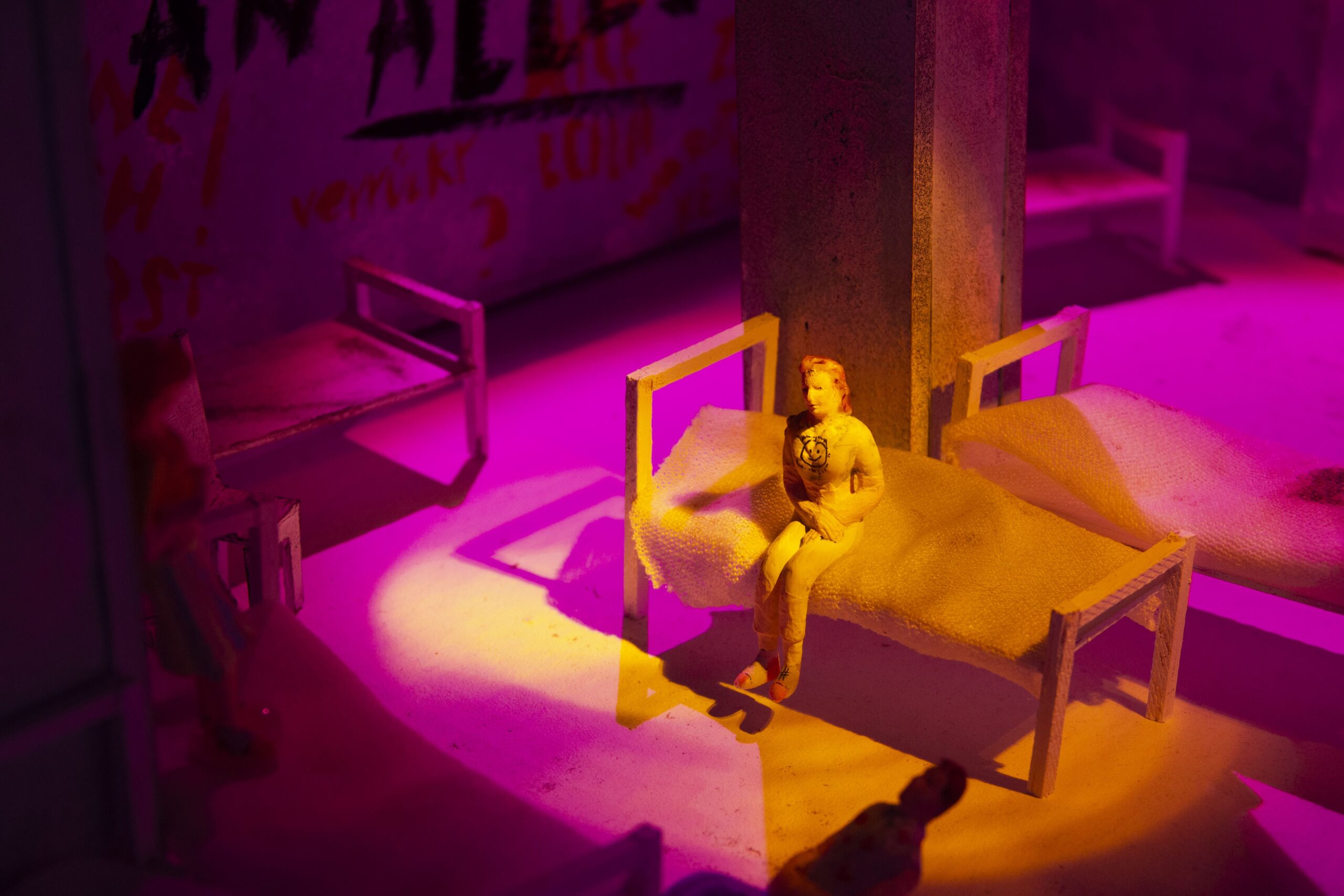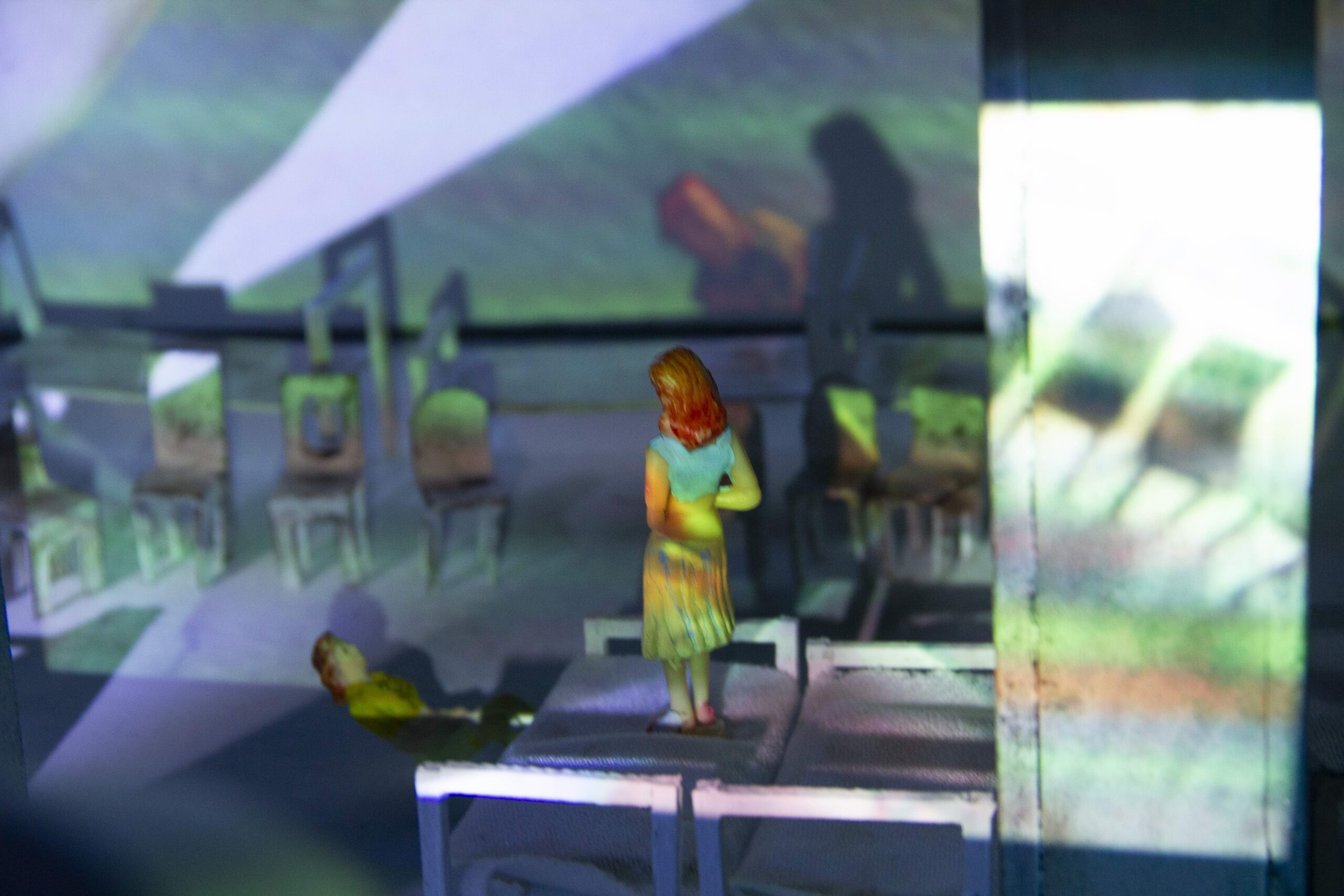 The audience sits among the actors/actresses, and in this confinement they all embark on a journey towards despair. It is a game that pushes spectators to become part, using their imagination and habitating this borderline reality between the theatre, the hospital and wonderland.